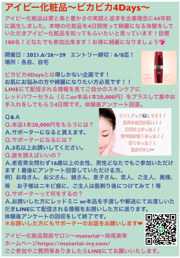 これからも、”~アイビー化粧品取扱いサロン~material(マテリアル)”をよろしくお願い致します!